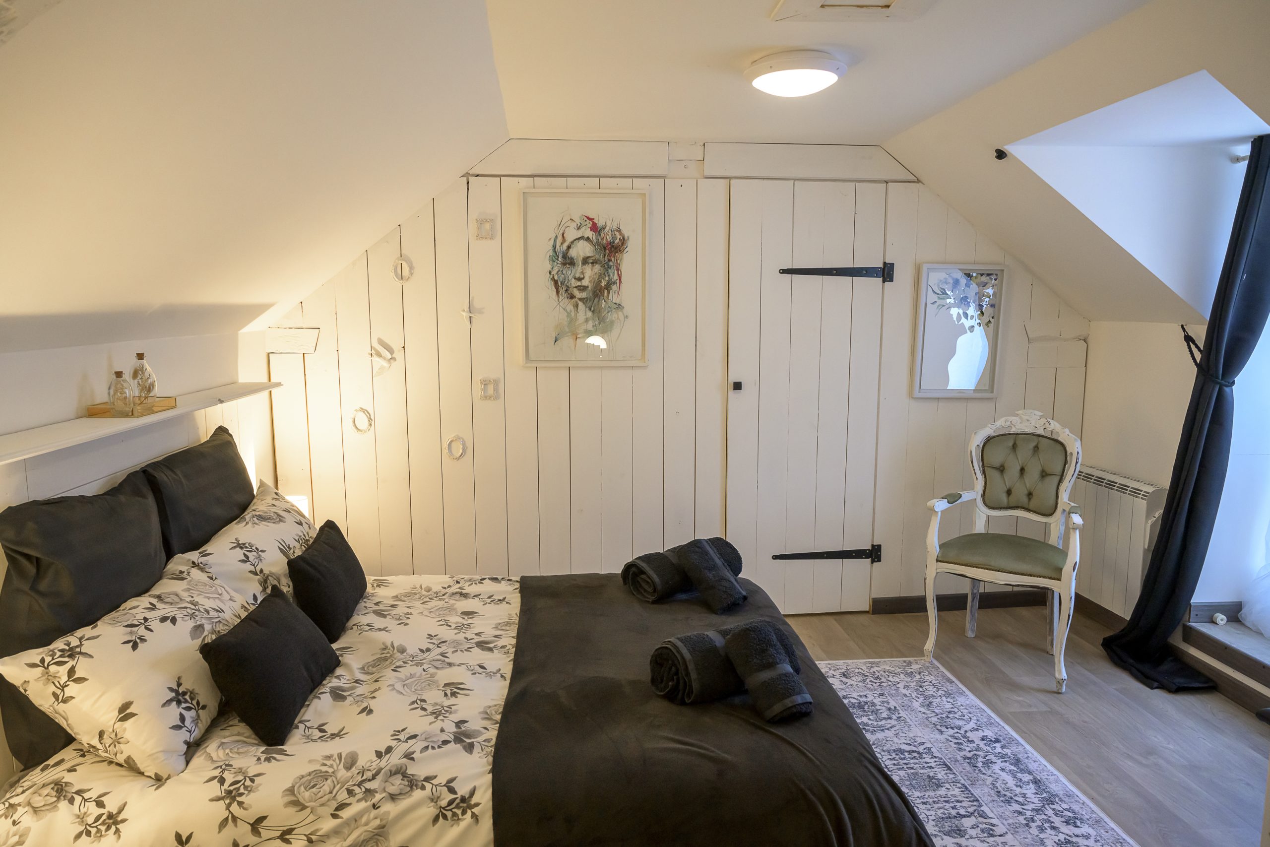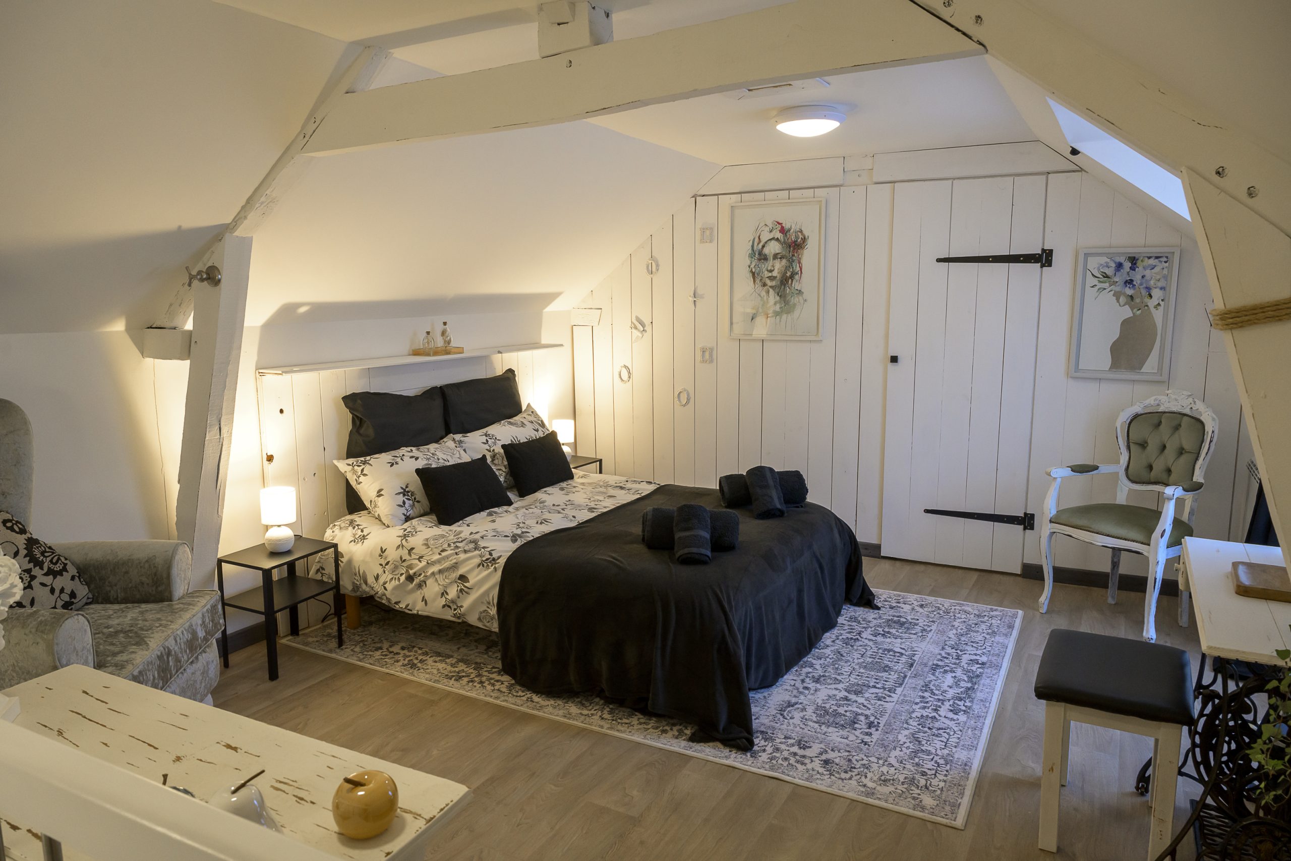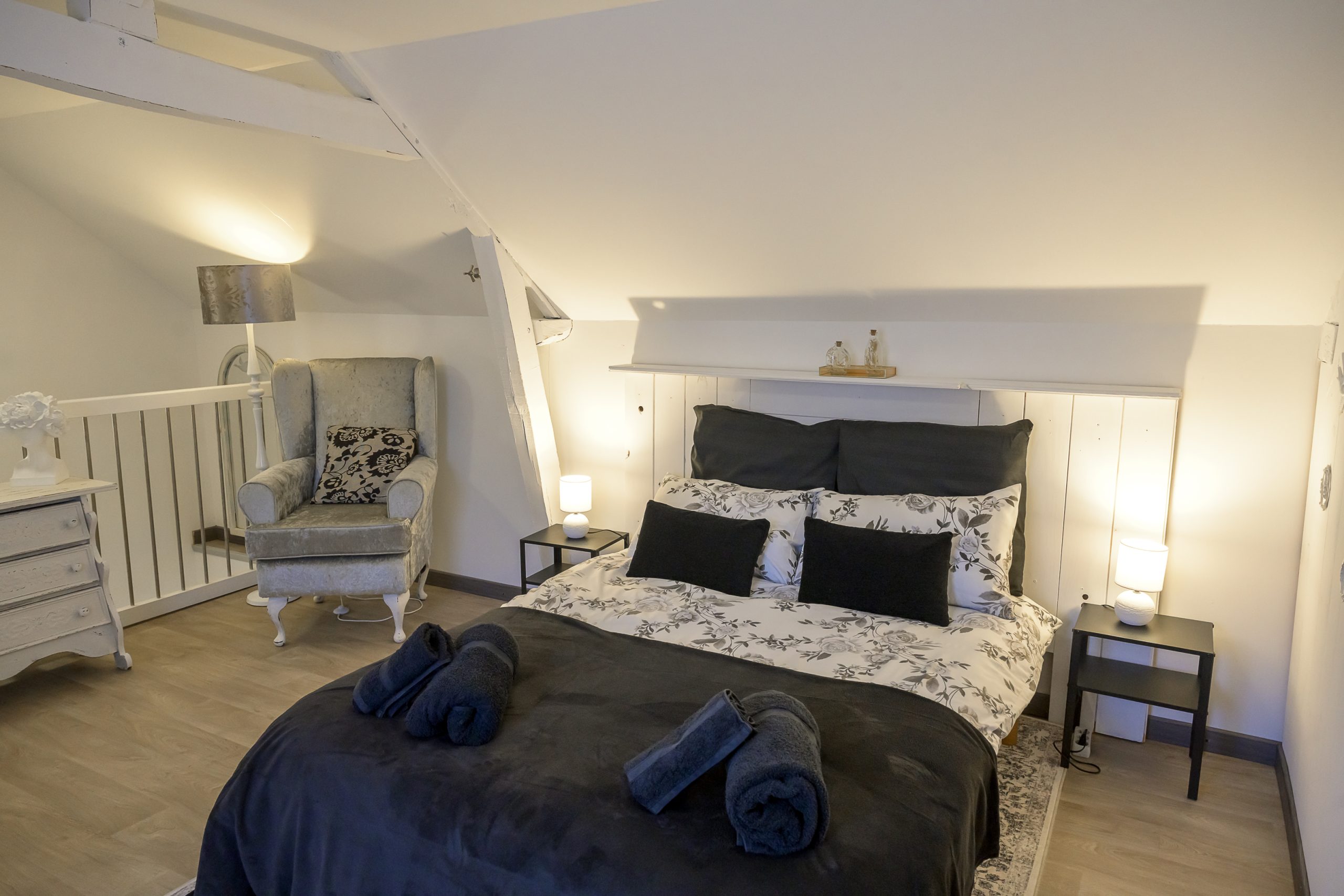 Our spacious gîte features a cozy and versatile layout, with an open-plan upstairs sleeping area for up to 4 guests and a comfortable sofa bed in the downstairs living room 2 guests, accommodating up to 6 guests in total—perfect for families, couples, or small groups. We are also able to put extra beds in the upstairs open plan main bedroom area on request and for a further cost. Please ask for details.