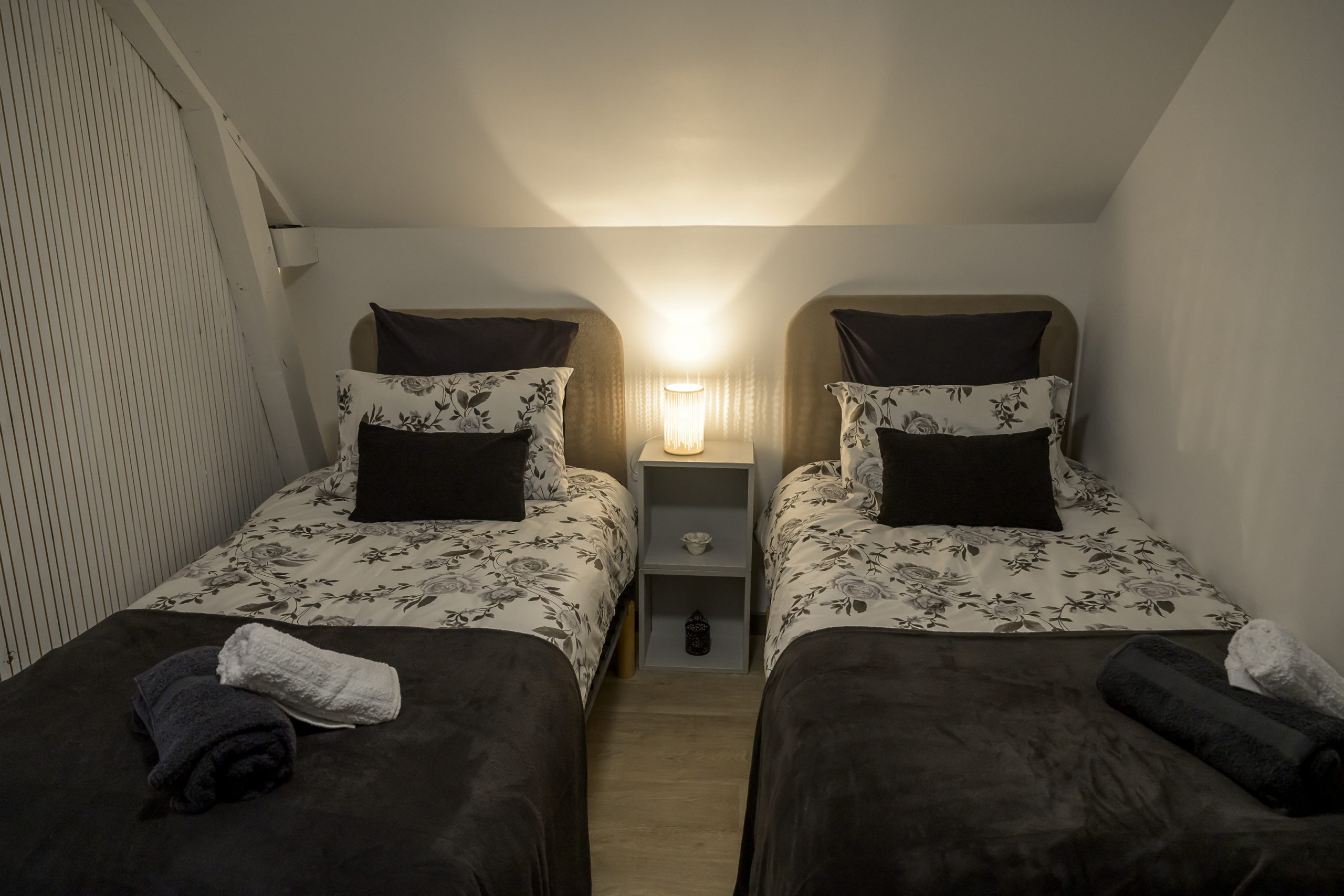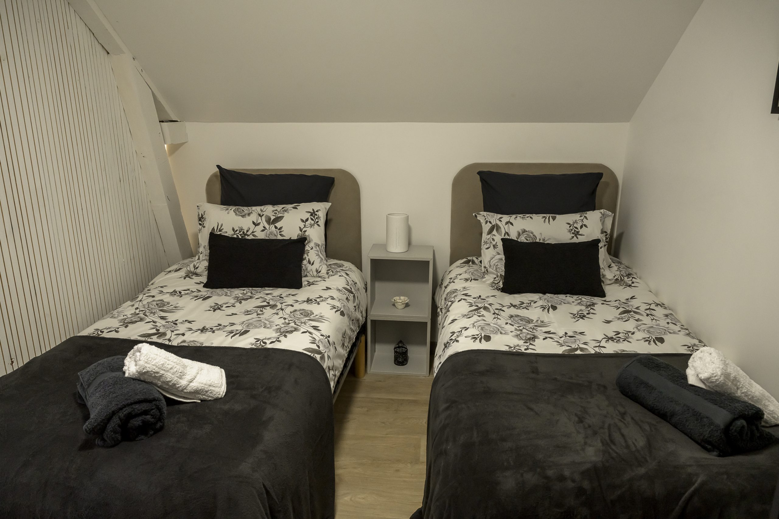 Upstairs: A main bedroom with a double bed that sleeps 2 guests. Via the main bedroom access to the 2nd bedroom that has twin beds.